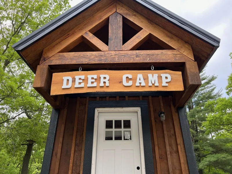Hand crafted from native oak which was cut and dried in Macon County. Timber frame design with oak batten board siding. Pella vinyl thermopane windows, hardwood flooring, well insulated, small electric panel with interior lighting. This is brand new, and never used. Built on skids for portability, ready for a weekend get away spot, or tiny home location. Buyer is responsible for moving, trailer in photo is not included.