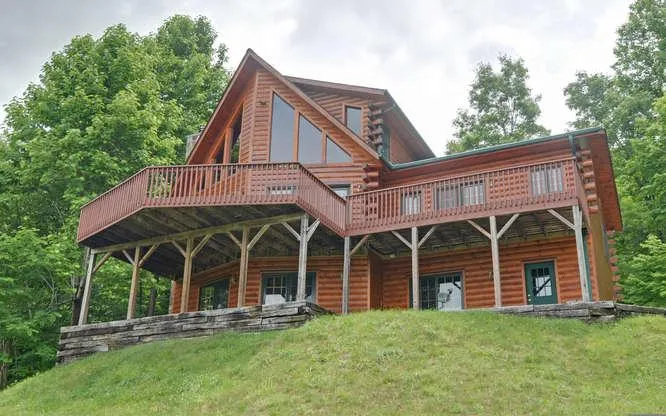 Resting high and proud is this 2BR/3BA Lincoln Log Home surrounded by 4.25 acres of woodland. Offering tremendous views...yes I said views and privacy which is so hard to find!!! Main level is all wood with living room, kitchen dining, den, bonus, and guest BR and BA. Wood continues upstairs to a private master suite PLUS a loft for office or reading and a screened porch. 2 wood burning fireplaces to keep you toasty on all levels. Basement provides a huge rec room, laundry and 3rd BA. C/H/A, tons of porches/decks, storage building and privacy gate. Located in the heart of the Nantahala Forest, this beauty is 5 miles from the rafting launch site of the Nantahala River, one of the nations most popular whitewater venues.