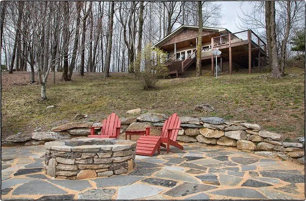 SkyHigh Cottage is a delightful private retreat at elevation higher than Main Street in Highlands. For a weekend, a season or year round, indulge in quiet, end of the road privacy. Native rhododendron, weeping cherry, and giant limelight hydrangea create natural color against the backdrop of Scaly Mountain. All this is literally steps away from National Forest, perpetuallly protected lands are just beyond the drive way to this property. The forest service road leads you to the Bartram Trail - talk about easy hiking access! The perfectly decorated cottage boasts large decks, open and covered, for enjoyomg the top of the mountain breezes, overlooking the trees, mountains, and charming stone patio. Laze in the hammock, roast marshmallows over a fire, or just read a book on the porch. Inside, get super warm with the Malm gas log fire place, (easily converted to wood burning). The great room ...
