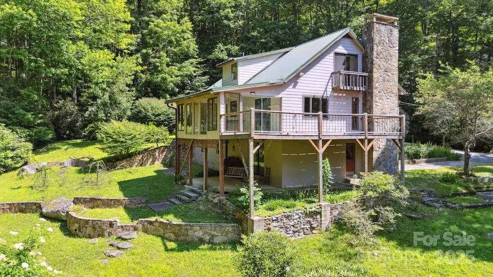 Nestled on 9.52 acres, this 2-bedroom home offers the perfect blend of privacy and convenience, just a 6-minute drive to downtown Highlands, NC. Adjoining USFS land and featuring a bold babbling creek running along the property, visible and audible from the sunroom, open deck, and kitchen, as well as the terraced backyard. Enjoy plenty of natural light on the main and upper levels, with a newer kitchen featuring marble counters and a breakfast bar. The lower level offers a separate guest suite with its own full kitchen, bathroom, living area, and bedroom. Rent it out long-term or use it for extra guests. Two attached single-car garages: one in the basement with a workshop area and another at the side of the home. An additional higher-elevation house site offers a chance for long-range views. While the home needs work, it offers exceptional potential for a luxurious private estate close to the resort town of Highlands. Don't wait, schedule your appointment for a private tour today!