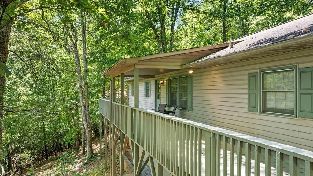This charming, well-built 2 Bedroom, 2-bath comfortable home for seasonal or full time living, located in a great subdivision that offers the peace of country living while being close to town. Has the ease of one level living, with an open floor plan with hardwood floors, a rock gas log FP and central heat & air. The kitchen boasts abundant cabinet space and a breakfast bar. The primary bedroom features an ensuite bath, providing convenient one-level living. Has nice winter views, and with some tree trimming, could have some year round views as well. Relax on the covered rocking chair porch while enjoying the symphony of nature. An attached garage provides easy access. The tall crawl space, offers excellent extra storage. You'll love the mature shade trees and wonderful landscaping that enhance this quiet setting. Come see this home today.