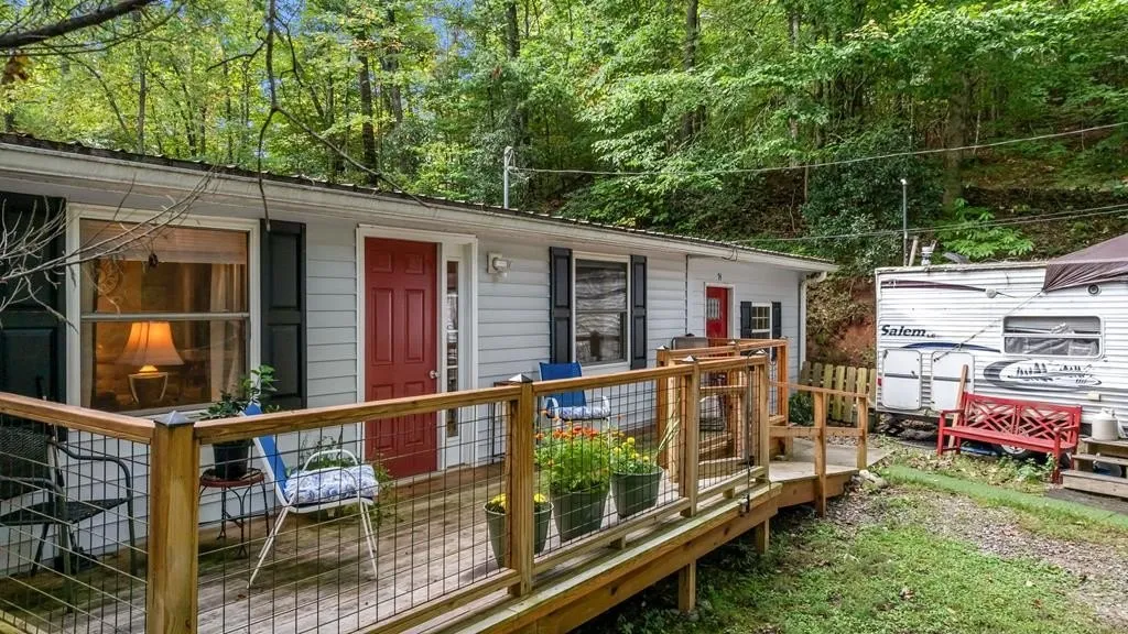 MOTIVATED SELLER!!! Tucked away among mature trees, this beautifully remodeled 2-bedroom, 1-bath home offers a peaceful retreat with a rustic, cabin-like feel. Situated on a 0.77-acre lot, the property has minimal restrictions (no mobile homes allowed), giving future owners flexibility without the burden of an HOA. Completely renovated after purchase in 2023, this home blends modern updates with cozy charm. The main living areas feature tongue-and-groove ceilings, adding a warm, woodsy ambiance throughout. Key updates include: New water heater (2024), 2-year-old kitchen appliances, 1-year-old washer, Slate walk-in shower with built-in bench, central heat and air, metal roofing. The spacious primary bedroom boasts a walk-in closet, while the back bedroom currently houses the washer/dryer setup. A mudroom off the kitchen adds functional space for daily living. There is a single carport and an enclosed workshop—perfect for hobbies or extra storage. Outdoor features include new ramps at both the front and back entrances and a comfortable deck to enjoy the natural surroundings. Winter views are already visible, and selective tree trimming could easily open up year-round vistas.