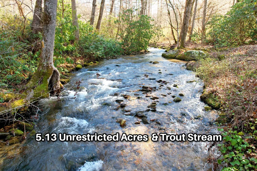 5.13 Acres of Unrestricted Creekfront Land! Nature lovers paradise with a spring, a pond, a stream, Tessentee Creek, hiking trails and game trails! The pristine Tessentee Creek frontage includes both sides of the creek for ~350 feet with a total of ~650 feet. Fish in your own backyard! Easy year round access for all vehicle types. Paved access roads transition to a flat gravel road for the final ~450 feet. Old home has been removed but a drilled well, the rock fireplace and a concrete slab remains for your enjoyment. The old deck and foot bridge over the creek could be a fun repair project. This could be your creekside RV, Tiny Home or Vacation Home retreat. Nice flat and usable property along the creek. Come embrace the great outdoors! Kids will have a blast catching newts and tadpoles in the pond and fish, crawdads and salamanders in the creek. Hiking trails have been cleared around the perimeter and the middle of the property. Recently surveyed and the boundary lines are clearly marked. Property has been surveyed in two halves in case the next owner would like to split the property. No Restrictions, No Zoning, No HOA. Buy now and build whenever you are ready. County Taxes are only $252/yr. Great Location: 18 minutes to Franklin, NC or 24 minutes to Clayton, GA. Really nice 2,300-2,400 feet elevation. Property has an existing well but will need septic. Power lines on the property but electric service is not established at this time. Starlink is likely the best option for internet and wifi calls. A portion of the creek frontage is considered 1% annual floodplain. Unrestricted Creekfront Land sells very quickly so make plans to see this one today! Priced at $129,900.