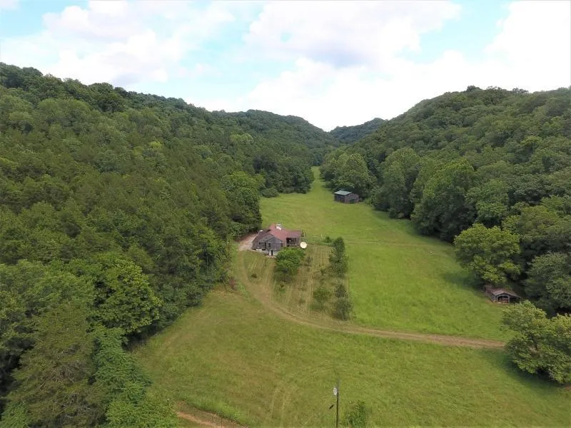 Tucked into it's own private hollow with a meandering creek running alongside pasture ground that is routinely cut for hay, this property offers incredible privacy, beauty and solitude. With tons of mature hardwood timber, an older home that was lived in just a short time ago, great deer and turkey hunting, and a barn; the opportunities on this property are endless. Home is being sold as is. See pictures for aerial, and topography map.