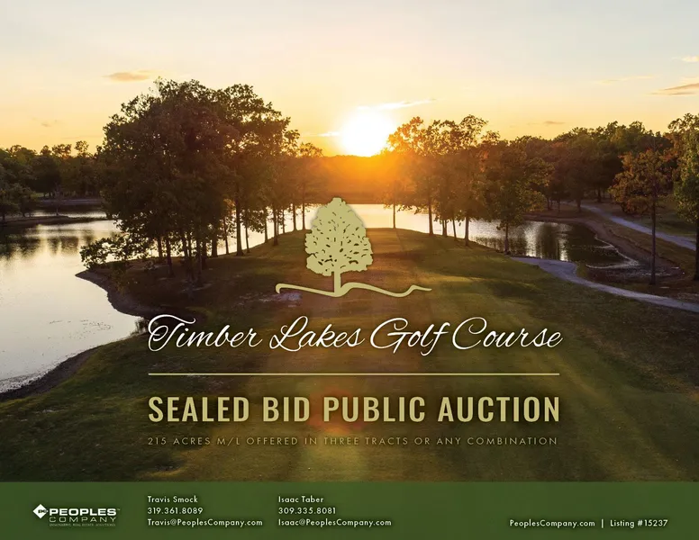 Peoples Company is pleased to offer the Timber Lakes Golf Course situated along Interstate 55 just off of Historic Route 66 in Staunton, IL which is located only 40 minutes from St. Louis, MO and 50 minutes from Springfield, IL. The property is being offered in 3 tracts through a Sealed Bid Auction process with bids due by 5:00 P.M. CST, December 18, 2020. Potential Buyers will be allowed to bid on individual tracts or the property in its entirety. The property offers endless possibilities, not only as a highly-trafficked golf course, but for beautiful building sites, an income producing campground, or a recreational playground. Additionally, the soil types and topography of the property along with the I-55 frontage make the land attractive to future row-crop production or solar development.