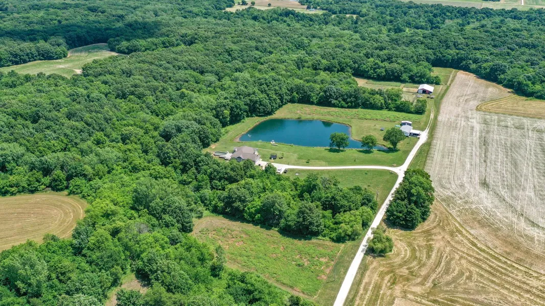 Dont miss out on this 18.65+/- acre property available in Palmyra. The 4 bedroom, 2 bath home features entry foyer, large living room with vaulted ceiling and gas fireplace. Spacious eat in kitchen with breakfast room and center island. Main floor laundry walks through to the 2 car attached garage. Beautiful hard wood floors throughout main floor. Separate dining room that walks out to the deck and above ground swimming pool. Main floor master bedroom suite. Walk through, walk in closet to master bath. Pole building and fenced pasture located on the rear of the property. Geothermal furnace. Electric water heater. Propane tank is owned. City water. Mobile home can be removed if necessary for financing. Shed will stay. Generator negotiable. Pond. With small dock. Concrete driveway outside of the garage. Enough parking for at least 8 vehicles.