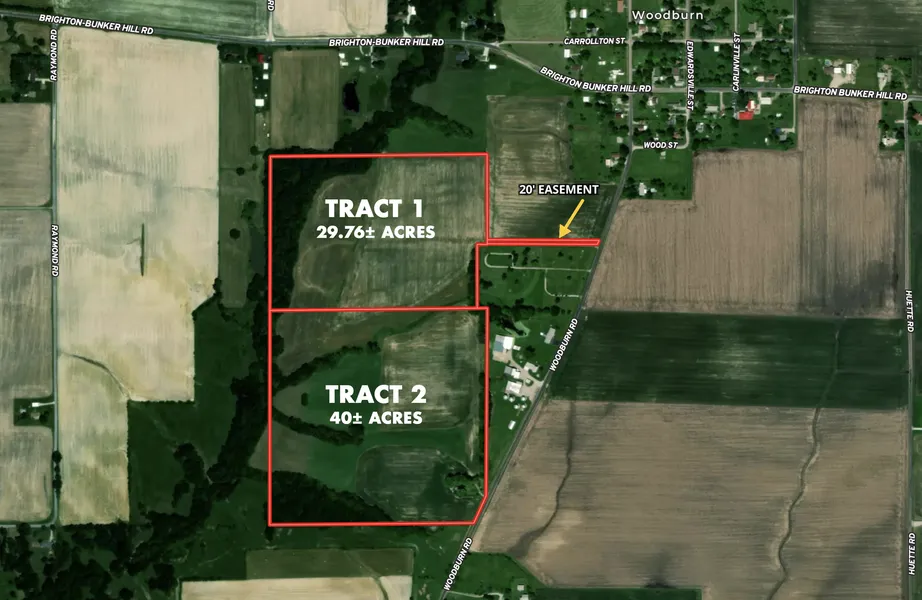 Description: Tract 1 - 29.76 +/- acres of mostly tillable land located in Macoupin County, IL. This farm features approximately 23 acres currently in row crop. It may also be suitable for a buyer looking for a custom home site. It is a rural location with a country feel but only a short drive to interstate access and other amenities.