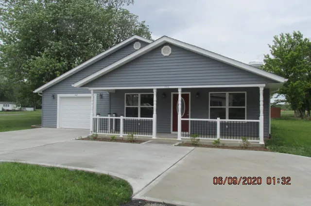 Newly constructed all electric one story home with 3 bedrooms, 2 full baths, open kitchen, dining area and living room. Interior is light and bright. Features include soft close drawers, bathroom faucet lighting, skylights, walk-in closet, french doors. French doors in master bedroom open to a 15 x 15 covered patio. Excellent area for your morning and evening delights. Circular concrete driveway and covered porch with vinyl railing enhance front view of home. Oversized, attached 1 car garage. Landscaping adds appeal. Property consists of 5 lots. Public water and sewer. One year builder's warranty. Satisfy your desire for a new home.