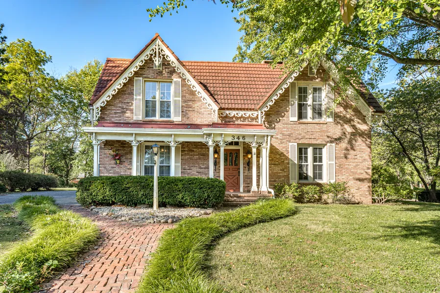 TIMELESS TREASURE! Carpenter Gothic style all-brick home with gorgeous gingerbread trim. 6 bedroom, 4.5 baths with elegance around every turn! Finished lower level with rec room, half bath, bar/kitchenette & family room. The main floor has an open living room & kitchen with a double-sided fireplace that is shared with the formal dining room. Updated kitchen boasts stainless steel appliances & abundant seating space for everyone to gather. Formal sitting room & foyer entryway as you enter the home through the front door. Theres also a full bath on the main level as well as a master bedroom with an en suite & a loft space! Off of the kitchen is a sunroom thats a plant-lovers dream! Upstairs is an additional 3 bedrooms, another master bedroom with balcony access & an office room that can double as a bedroom. Located on a .75 acre lot with a horseshoe drive, just down the street from Blackbu...