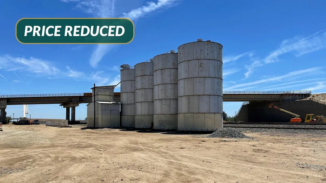 This property is currently open ground with BNSF rail frontage and county road access. The lot was historically used for grain storage and has 4 large metal silos. There are industrial developments and storage yards nearby.