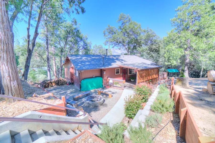 Tranquil & serene property is this home nestled in the Sierra Nevada Forest, 5 minutes from Bass Lake for all water & outdoor recreation. The views are incredible with 3 bedrooms and 2 bathrooms. The ceilings are knotty pine in Master and Family/Dining area. The greatroom has a Pellet stove & the Masterbedroom has a woodburning fireplace. The seller has paid attention to all the details. The decks encompass 3 sides of the home, securely gated & kid and pet friendly. For the adventure enthusiast there are places to hike at the back of the property and several amenities on the property that include a Wildlife feeding station and a Entertaining Circle with a firepit. The sellers are including in the sale the refrigerator and washer & dryer as well as many other furniture items. This home is move in ready & you will never want to leave. Home is ideal for owner-occupied, vacation home or vacation rental. Please bring your buyers, it won't last long at this price and all for under $300