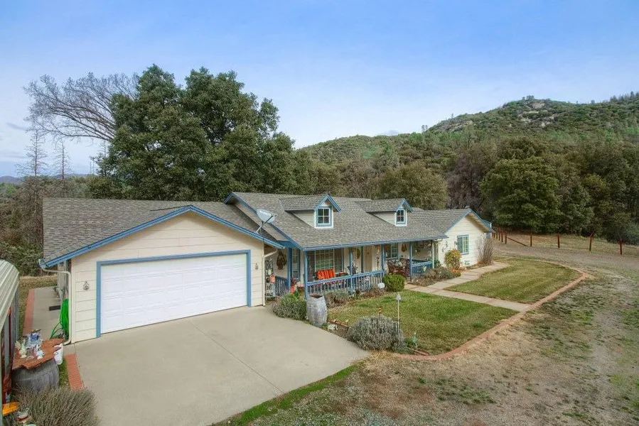 If you are looking for a place to call home, living in peace and serenity with beautiful pines, oaks and cedars and close to both Mariposa and Oakhurst, look no further! This home is a dream come true! Gorgeous private setting with panoramic views, year 'round creek and plenty of room for horses. This 2135+/- sq. ft. 4 bedrooms, 3 bathrooms has separate living room and family room, with built-in book cases, open kitchen, separate spacious laundry room, tile floors throughout, free standing wood stove, large covered porch in both front and back with outdoor ceiling fans, plus appx. 600 sq. ft. steel building with bathroom, possible guest home, permitted as storage, all on 5.5+/- acres with 2800 elevation. Includes a large fenced-in orchard with apple, plum, apricot and pear trees. 2 Tuff sheds, chicken coop, full RV hook-ups. 2 car garage plus carport. Enjoy the evenings, watching the moon come up and shooting stars!