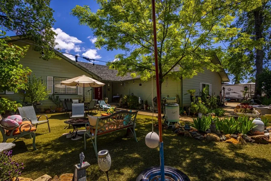 Situated less than 5 minutes from Coarsegold, this home and property will keep you quite self-sufficient with all that the property and home have to offer. With having over 4 acres that are fenced for livestock, large, fenced area with raised beds each with their own water system, fruit trees, berry bushes, small area set up for small livestock like chickens and pigs, what else could you ask for. Within the last 6 months, a new 50 year roof has been installed, new composite decking wrapping around the home with views overlooking your property and the sierras. The home has Hardwood floors, vaulted Beam knotty pine beam ceilings with open floorplan. Even the large pantry and laundry area has a half bath leading to the garage. Walk down the steps beside the new deck and check out the extra 460+/- sq. ft. finished and 400+/- semi-finished basement space that is not included in the sq. ft. This area is all set up for a game room, exercise space, kids retreat and what ever your imagination can produce. There is an area set aside for a future bathroom as well. Be sure to notice the manufactured home that is currently being occupied by a caretaker of the property so you could set this up for another family member to live on the property.