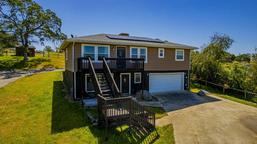 Bring your livestock, cows, goats, sheep and chickens for this property is all set up with many outbuildings, tack rooms, storage shed and large chicken coop, plus it's fenced and cross-fenced for your animals. But it's just just for animals, this 3 bedroom, 3 1/3 bath home has fantastic views! The main living area is on the upper level with the living and dining area, large kitchen with a breakfast nook, the master bedroom, guest bedroom and 2 1/2 baths complete this level. The lower level is a huge bedroom with a private entrance and a 3/4 bath. This bedroom could make a great game room or in-law plan. Enjoy the views from the deck or the back covered porch. This home has a large ramp leading up to the back porch for convenient unloading of groceries or for handicapped use. The 2 car garage and a workshop with plenty of room to work on those projects for your farm. Just an overall very...