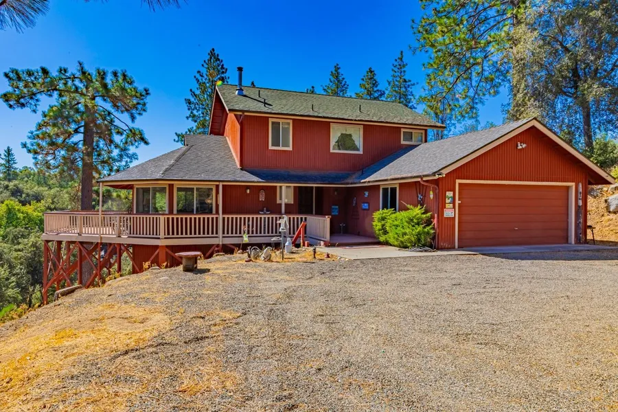 Discover your perfect getaway at this exquisite custom mountain retreat nestled on 10 serene acres in Oakhurst. This one owner two-story home features 3 spacious bedrooms and 3 baths, designed for both comfort and style. Step down Living room is the focal point with lots of windows, gorgeous rock hearth and a feeling your in a tree house. The highlight of the property is the expansive deck, perfect for soaking in breathtaking mountain views and enjoying the tranquility of nature.Step into the heart of the home, where you'll find an inviting open layout that seamlessly connects the living spaces. Oversized laundry room has extra area perfect for office space or whatever your needs. The bonus area downstairs offers additional privacy with its own entrance, complete with a cozy bedroom, bath, and sitting roomideal for guests or as a private office. Wander through the lush surroundings to fi...