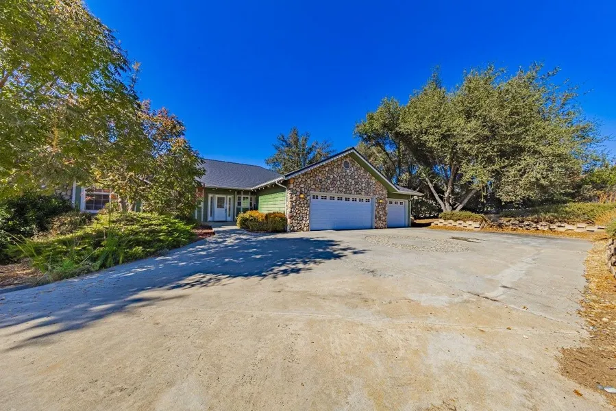 Bring your clubs & be ready to play golf in this desirable neighborhood of River Creek Golf Course. Lovely Chris Smith built custom home on the golf course overlooking a pond. This 3478+/- sq. ft., 4 BR, 3 full BA home has a living room & a family room & a 5 car garage sitting on 1.08+/- usable acre. As you enter on the top floor, you will find the large master suite with 2 walk-in closets, separate sitting area & fireplace, viewable through into the living room as well. A perfect area to relax & read a book. The master BA includes 2 sink vanity & Jacuzzi tub. Plenty of windows to view the outdoors. Enjoy walking out to the back covered wrap around deck. A great kitchen features a nice breakfast bar, pantry, granite counters with an abundance of cabinets throughout & there is a laundry room with additional storage cabinets. Lots of parking with a 3 car attached garage. That's not all! Downstairs is a nice sized family room, 2 more good size BRs, additional area currently set up with beds to make a 4th BR, full BA & covered outdoor concrete patio with an additional attached 2 car garage & it has a separate entrance so could possibly be the perfect vacation rental or live upstairs & use the downstairs as a monthly rental. River rock exterior decor, concrete driveway, landscaped, including many Oaks & rock outcroppings. Tankless water heater, fire pit sitting area, whole house generator, water softener & most all of the furnishings could be negotiated with the sale.
