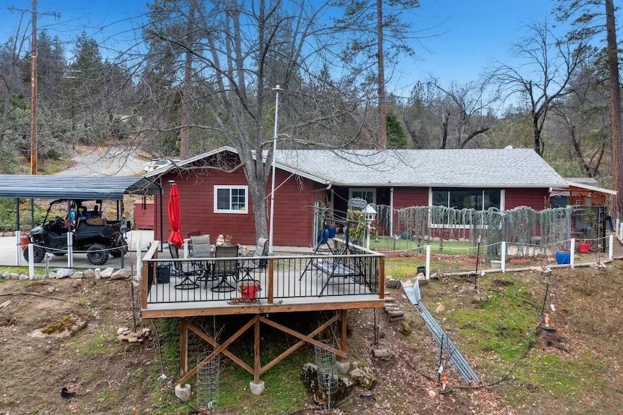 Scenic Mountain Retreat Near Manzanita LakeThis beautifully updated 3-bedroom, 2-bath home offers comfort, convenience, and breathtaking Sierra views. The open floor plan features ceiling fans, a cozy pellet stove, and newly painted living areas, hallways, and baths. The kitchen and bathrooms boast granite countertops, while new flooring adds a fresh touch throughout. A well with a dedicated well house, an owned propane tank, and a whole-house generator provide self-sufficiency and peace of mind.Outdoor living is a dream with a new deck overlooking the property, a gazebo ready for a spa, and two large Tuff sheds for ample storage. The finished detached two-car garage, currently an entertainment space, presents a potential ADU opportunity. The attached two-car garage features 220V power, and two covered carports provide additional parking for vehicles, boats, or RVs.This property is perfectly positioned just across the road from Manzanita Lake, with a five-minute walk to picnic areas and walking trails. It's only a two-minute drive to North Fork and just ten minutes to Bass Lake, making it an excellent location for a full-time residence, vacation home, or rental investment.Surrounded by fruit trees, oaks, cedars, maples, and manzanita pines, this peaceful retreat also offers a prospective second homesite, adding future potential. Don't miss the chance to own this versatile mountain getaway!This property is adjacent to PG&E land, providing added privacy and natural beauty.
