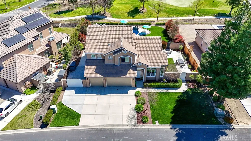 From the entry way the wow factor is here! Inside features granite in the kitchen and throughout all bathrooms and the laundry room. With 4 bedrooms plus an enclosed bonus room that has a mini kitchen and could serve as an office, a game room or even a 5th bedroom this home shines! The views are terrific as this home is located on the 5th fairway. There is something for everyone including the front living and dining combination featuring a gas fireplace with a slider leading to the splendid and peaceful courtyard with additional patio areas, lemon trees and a water feature, adding to the tranquility. The kitchen opens to the family room with a second gas fireplace. Kitchen features ample counter space, under cabinet lighting, stainless steel appliances, and a wonderful eating area with plenty of natural light and those amazing views of the pool and golf course. With multiple places to entertain this home includes a pebble tech pool with waterfalls and stamped concrete, a spa with interchangeable jets, a covered patio with ceiling fans, two fire pits, multiple towel stations, the beautiful court yard and a covered balcony with more amazing views. The primary suite is on the main level for added privacy. Prepare to be impressed! So many features and amenities in this gated community so schedule your viewing today!