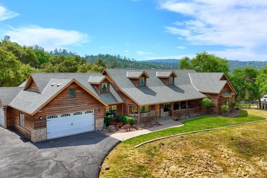 Custom built 4 BD, 2 BA w/a fantastic in-ground pool, barn, room for your horses & owned solar! The lovely front view has an open lg. front yard w/a covered front porch that is perfect to watch the kids run around. Stunning tongue 'n groove walls & ceilings w/open beams, drop ceiling fans, stamped stained concrete flooring are lovely details throughout w/new interior paint & new primary BD floor. Lg. view windows & a rock fireplace will be a favorite retreat for the whole family in the living/dining area. The kitchen has a great flow w/surround quartz counter tops, granite sink & cabinets w/a convenient breakfast bar, chef's dream Viking stove w/hood, dishwasher, built-in oven & walk-in pantry. An office/bonus room, laundry room, BAs & BDs can be found as you travel down the hall. The primary BD has a private fireplace, unique beamed ceiling w/fan, dramatic view windows to wake up to, walk-in closet & separate jetted tub & shower. Guest BDs have window seats. The back patio has so much room for entertaining & the pool is perfect for summer fun & exercise. The 2 car 726+/- sq. ft. garage is used as a game room complete w/mini frig/bar, heat & AC-it's a man cave but easily converted back & then some w/an additional 1 car garage! Beautiful property w/corrals, a huge barn & room to ride! Great for your small horse ranch, completely fenced or cross-fenced. Easy commute locate to Fresno or Madera! Come & see your dream come to life w/this country home w/all the bells & whistles!