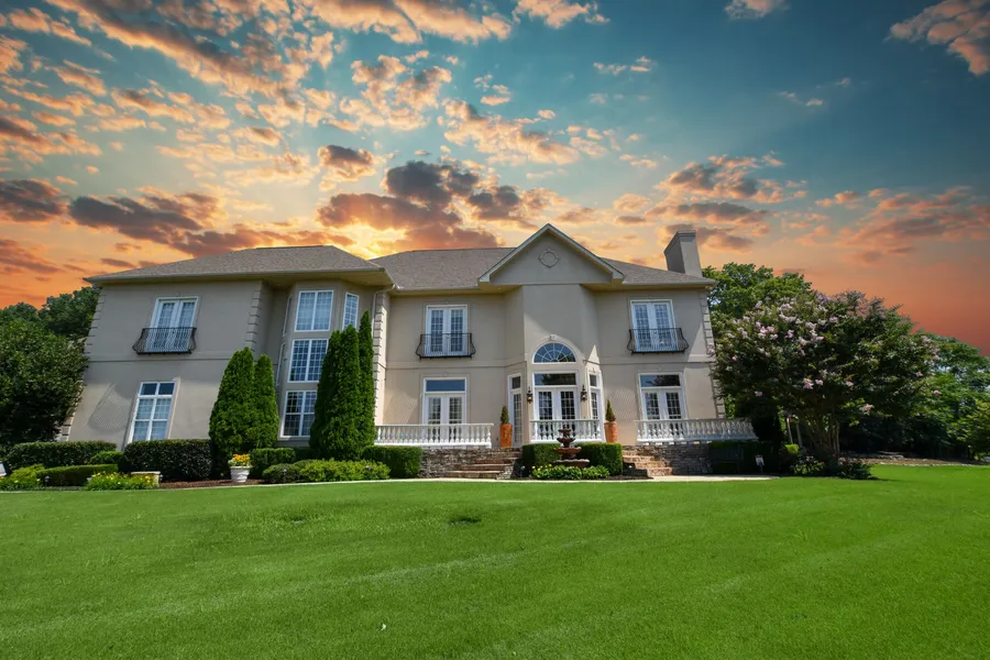 Beautiful California style estate with actual HAND TROWELED STUCCO exterior is a must see! Sitting on 2.4 acres with fantastic views & outdoor kitchen, you will always feel on vacation! Grand entrance, open living areas, & chef's kitchen with upgraded Viking appliances make this home perfect for entertaining. Cozy up in the family room with over sized stone fireplace or enjoy movie time in your private media room. Extensive crown molding through out! Master bedroom features sitting area, fireplace, spa like bathroom, private deck, and a fabulous walk in closet with built ins galore. Two story executive study! Guest house with 912 sq ft features kitchen, living, & bedroom. Five car garage!