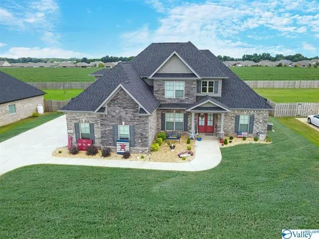 Full Brick, Fully Fenced-in w/ irrigation on .42 acres- 4BD/ 3.5BA w/ Loft & 3 car side entry garage. NO CARPET. Easy access to Hwy. 72, I-565 & Hwy 231 & minutes to Chase Industrial Park & N Huntsville Industrial Park. Features lots of upgrades, HARDWOODS THROUGHOUT, Upgraded Lighting package, Blinds, Viscount White Granite, Built-ins, French doors, Mud Bench, Coffered ceilings, 12" and 9" ceilings, Fireplace, Gas Range, Crown molding 1st floor & Master. Master BR on 1st Fl w/ huge walk-in closet w/custom shelving, dual sinks, Tiled separate shower w/ tub in Master BA. Covered porch extra concrete. Community features Pool, Clubhouse, Fishing Lake, Picnic Pavilion, & Walking path