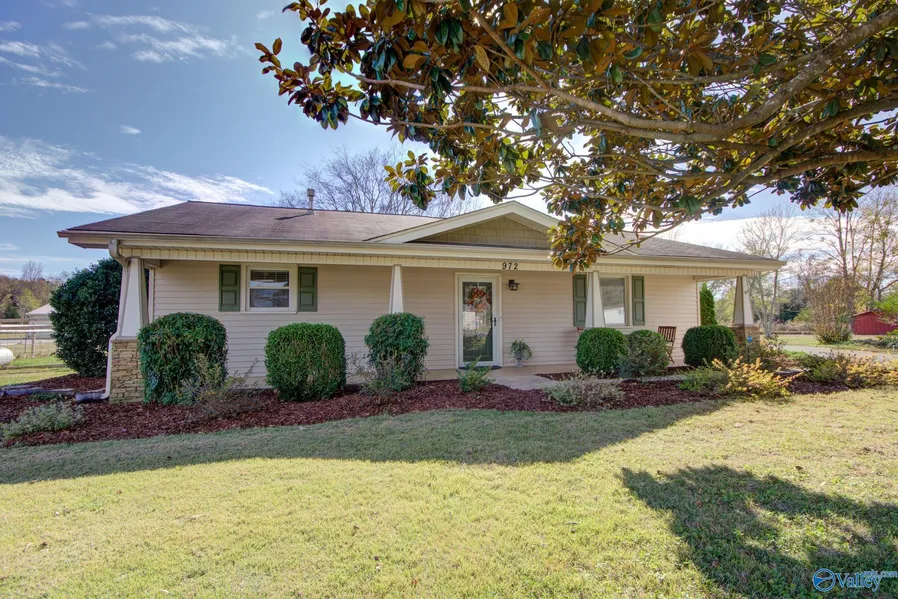 Fall in love today & move in by the new year! Charming 1482 sq ft ranch with UPDATES THROUGHOUT; excellent use of space. Hardwood floors in living areas & bedrooms; laundry, baths, kitchen are tiled. Stocked fishing pond & fish cleaning station, fire pit, attached 2-car carport, oversized detached single garage for storage PLUS an adorable RED BARN! Custom fenced back yard, ideal balance of trees and cleared areas to maximize enjoyment. 2" blinds throughout convey