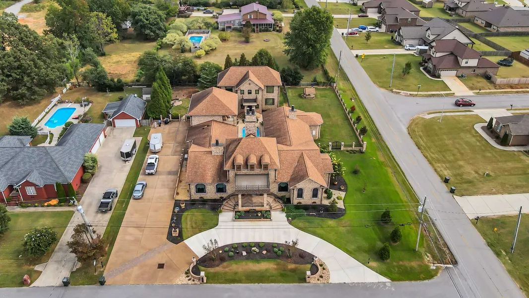 Exquisite custom home w/ every attention to detail. A total of 9000 sq ft including 3000 sq ft in carriage house on an acre. Barrel ceiling in the grand foyer, 24 in multi layered crown molding, 6 cast stone fireplaces, glazed custom cabinetry, quartz countertops, custom windows w/ fluted trim. 2 Gourmet kitchens perfect for entertaining! Custom tile bathrooms. 1800 sq ft pool & courtyard area with outdoor kitchen. Oversized owner's retreat w/ spa like bath & washer/dryer in in the walk in closet. Separate laundry area as well. Tankless water heaters on both houses. Game room can also be used as 5th bedroom w/ spa like bath. Storm shelter. Perfect home for hosting friends & family!