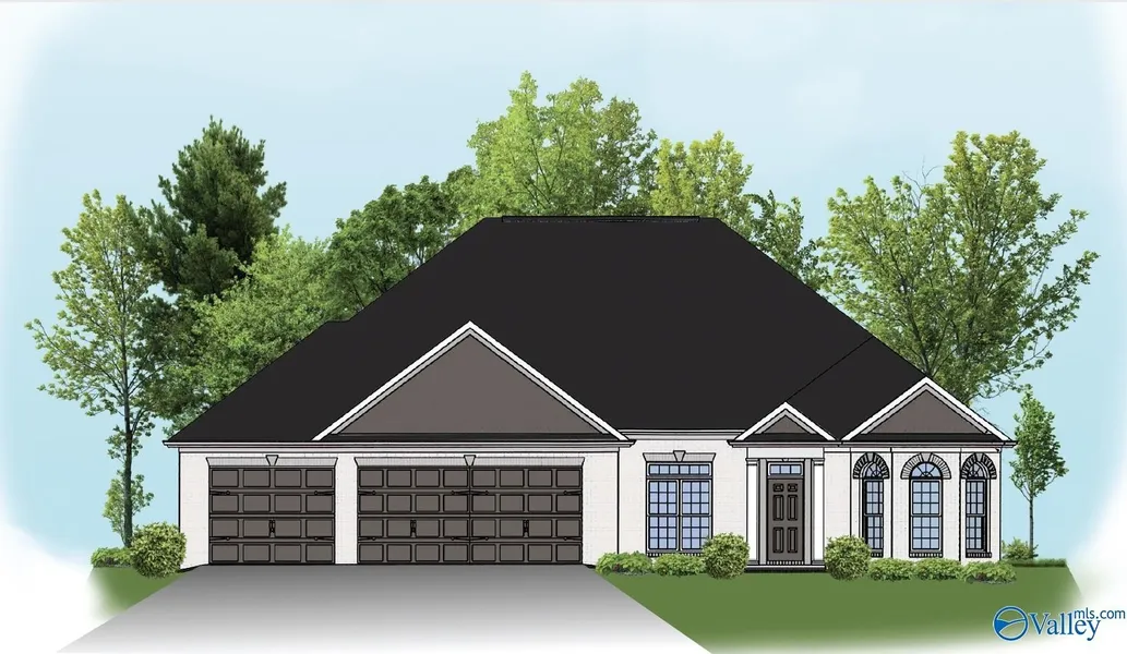 Under Construction-The Sherallyn is a 3,046 sq ft ranch-style home with 3 bedrooms, 3.5 baths, and a 3-car garage. The private master suite features a trey ceiling, hardwood floors, his-and-hers closets, a freestanding tub, tiled shower, and dual vanities. Enjoy a formal dining room with wainscoting, a study off the foyer, and two guest suites with private baths and walk-in closets. The gourmet kitchen includes double ovens, an island, and a corner pantry, opening to a spacious great room with a gas fireplace. Situated on nearly half an acre, this home is perfect for indoor and outdoor entertaining.