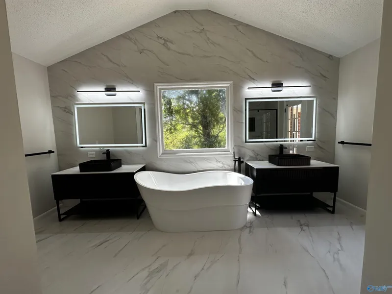 Stunning 3BR/2BA home with 2129 sq. ft., just 1 mile from Gate 3 at Redstone and 6 miles to Downtown Huntsville. Featuring all-new LVP flooring, fresh paint, updated lighting, and new appliances, this home shines with modern updates. A private office with built-in bookcases offers the perfect workspace. The luxurious owner’s suite boasts a spa-like bath with dual vanities, tile shower, soaking tub overlooking the backyard, and smart toilet with bidet. Enjoy a premium lot with a private courtyard—ideal for relaxing or entertaining. Move-in ready and perfectly located, this home is a rare find.