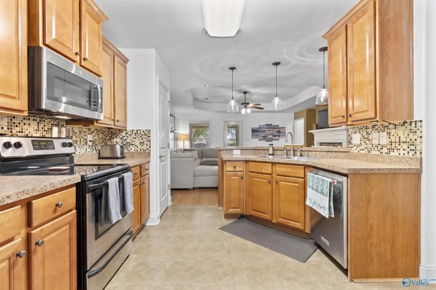 Welcome to this 3-bed, 2-bath full brick home! Enjoy your mornings on the covered front porch and unwind on the spacious back porch in the evenings. Inside, the layout flows nicely with spaces that feel open yet still defined. Hardwood floors in the living area, tile in wet spaces, and soft carpet in the bedrooms create the perfect mix of warmth and comfort throughout. Fresh paint gives the home a move-in-ready feel. The neighborhood features resort-style amenities including a pool, clubhouse, fitness center, tennis and basketball courts, playground, and sidewalks for evening walks. Conveniently located near Redstone Arsenal, Town Madison, Toyota Field, and I-565.