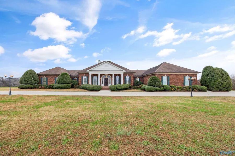 This beautiful home sits on 8+ acres & features 4 bedrooms plus a versatile bonus room complete with built-ins and a wet bar. The living room includes a fireplace, custom built-ins, & 12-ft ceilings. The updated kitchen showcases granite countertops & a spacious walk-in pantry, & dining room with its own butler’s pantry. Hardwood floors & elegant crown molding run throughout the home, including the primary suite, which offers a vaulted ceiling, dual closets & a bath with a walk-in shower. New carpet has been installed in all three additional bedrooms. Enjoy year round comfort in the sunroom overlooking the pool. A unfinished basement w/storm shelter and 2000 sq ft storage building.