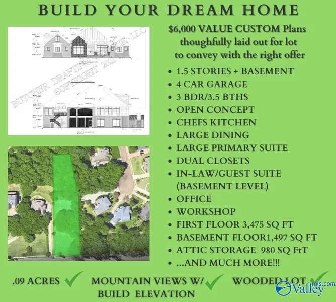 Priced to SELL!!! Almost Acre basement lot located in beautiful High Mountain Estates, a restricted subdivision with no HOA. Don't miss the opportunity to bask in the beauty of nature right from your own backyard and enjoy gorgeous mountain views from the Main Level! Sellers are offering $6K Custom Floor Plan, thoughtfully designed for the lot, with the right offer. Surrounded by Green Space and miles of trails and scenic Biking and Hiking connected to Monte Sano and TrailHead. Flint river is 10 min away... great for Kayaking & Canoeing. Lot is min from downtown, Huntsville Hospital, Restone Arsenal, Research Park, & easy access to 565!