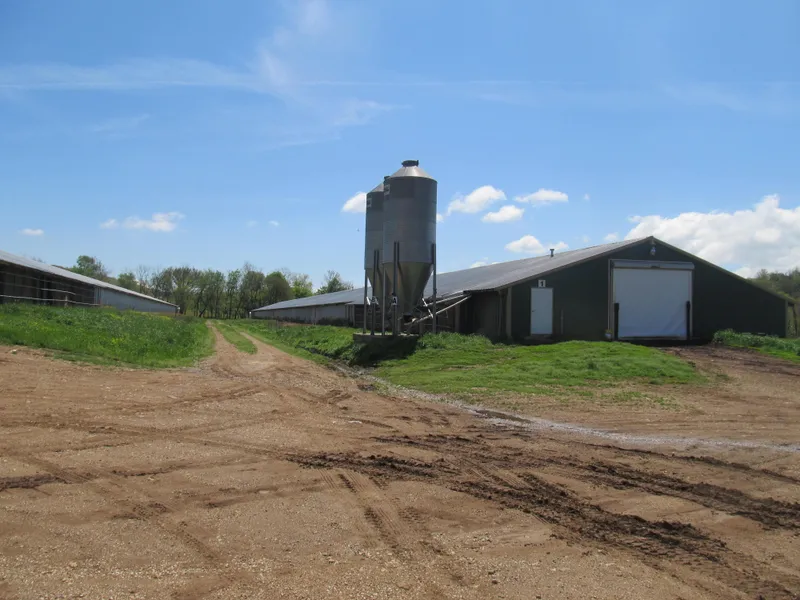 Farm features six 43x500 Poultry Houses with George's 7 pound bird contract ... Farm is updated .. Houses are steel truss that are extra heavy.. Solid sidewalls both inside and out ... New 40 Stage Rotem Controllers with alarm.. Valve Waterers .. Roxell Feed Lines ... Acme Fans .. Houses are Computerized ... Farm averages 5 to 5.5 Flocks per yr... Gross Income approx 300,000 .. Back up Generator .. Electricity Provider is Ozarks Electric .. Farm has a sea level well .. Rural Water and 15,000 gallons extra water storage... Farm is on Natural Gas .... Nice 4 bd/2ba Modular Home .. Hay Barn .. Equipment Shed and Compost Building on approx 36 Acres located on hwy 45 south near Hindsville AR $1,250,000