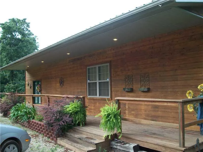 Nice cedar home on 15 acres in the Hindsville area. 2 bedrooms, 2 baths, large master bedroom, and deck around 3 sides of home. Land is mostly wooded.