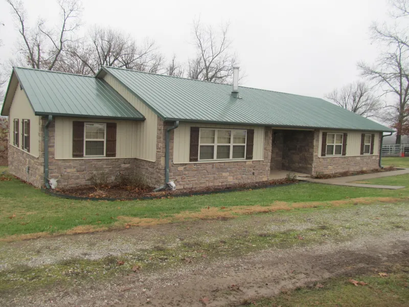 Custom Rustic Home - Scenic and well located Farm Land - Numerous Outbuildings and Potential for Profitable Home Business located on Hwy 303 North - 24 acres with 2 Ponds - Rural Water - 2 Wells -19 70 sq ft Three Bedroom 2 Bath Home has a rustic tone with Hickory Cabinets and pine doors and western aspen wainscoting and also pine board ceilings, Stainless Steel Appliances and 3 seat open bar, Deep sink, Delta Faucets, leather trimmed ceiling fan and lots of recessed lighting throughout, Native Stone by the cast iron woodstove, Large Tiles in all rooms except living and bedrooms.. walk-in closet in master .. large spacious laundry room - super efficient windows - Exterior is Rock Faced and Metal - Large Deck overlooking pond and mature trees in yard - Outbuildings are all Green Metal Roof and overall everthing is neat as a pin and ready for cattle or horses - 24x24 Shop and 40x60 12ft Shed -The owner is currently doing business as War Eagle Processing which is in the 20x90 Metal building with office cutting room walk-in cooler and the kill floor - also has a compressor shed and pens ... A RARE OPPORTUNITY ... Priced Right and move in ready for a new owner ... $315,000