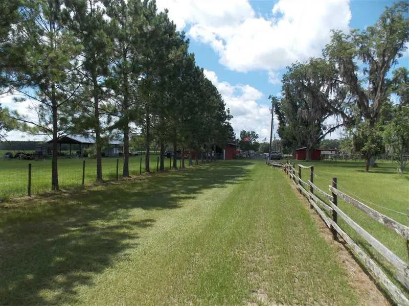 Turn key 365 +/- acre ranch with established pasture, hay fields and hardwoods! This farm features 4 ponds (three stocked), 2 pole barns with water and electric, 2 acres +/- acres of mature blueberries, all fenced and cross fenced and much more!! Two dwellings are situated on this tract. The main home is a 4 BR 2 BA mobile home that is in immaculate condition. The second home is a 2 BR 1 BA singlewide that is currently occupied by an employee of the farm. This tract also features great hunting with a healthy population of whitetails and turkey! Also located a short drive is public boat ramps on the Suwannee River offering fun filled days fishing, visiting local springs and watersports! Come enjoy the breathtaking views and all this farm has to offer!! Owner Financing Available!! (30% down/15 year amortization/3 year balloon/6% Interest)