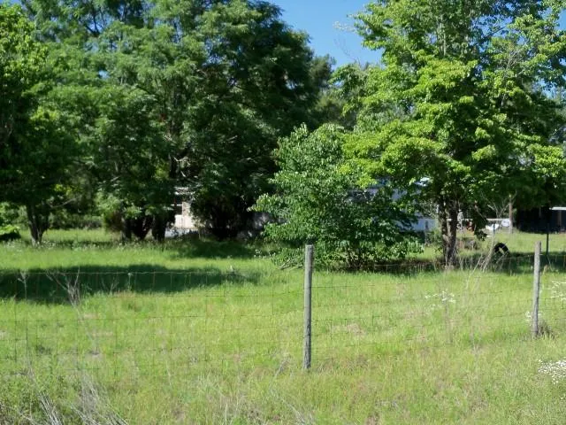 Great homesite with well and septic with paved road frontage. Partially fenced corner lot with a extra tall pole barn (tall enough for 18 wheelers to pull under). A portion of the pole barn has a storage space that could be converted to a lockable tool storage space. Mature nice trees, shrubs. Mobile home has been removed. Part of old, 12x12 storage building in the process of being demolished, being sold "AS IS".