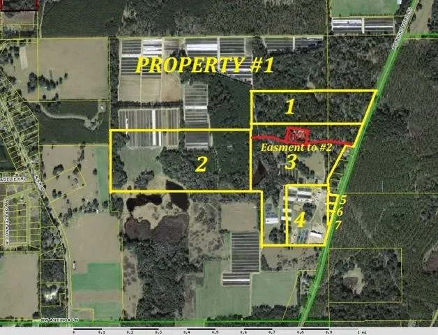 PRIME LOCATION & PRIME FARM LAND (PREVIOUSLY A LANDSCAPE NURSERY) W/IRRIGATION WELLS, UNDERGROUND IRRIGATION SYSTEM, POND, SHADE BEDS, PLANTED PINES, SHELTERS AND BARNS. FARM EQUIP, TRUCKS, MOWERS, MOBILE HOMES, WAGONS, ETC.