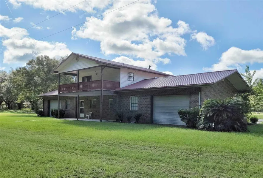 Park-like setting, beautiful granddaddy oaks, huge metal barn, board fencing and more! This former dog training track has been converted to a home with new kitchen and flooring. There is also a separate living area upstairs, or you could convert into a single two-story home. The 25x48 metal barn is perfect for a workshop or whatever is needed. There is also a 40x80 pole barn. Chain link fence from the dog track is still in place. Located in the country yet close to I-10, this is the perfect setting for a business or to call home.