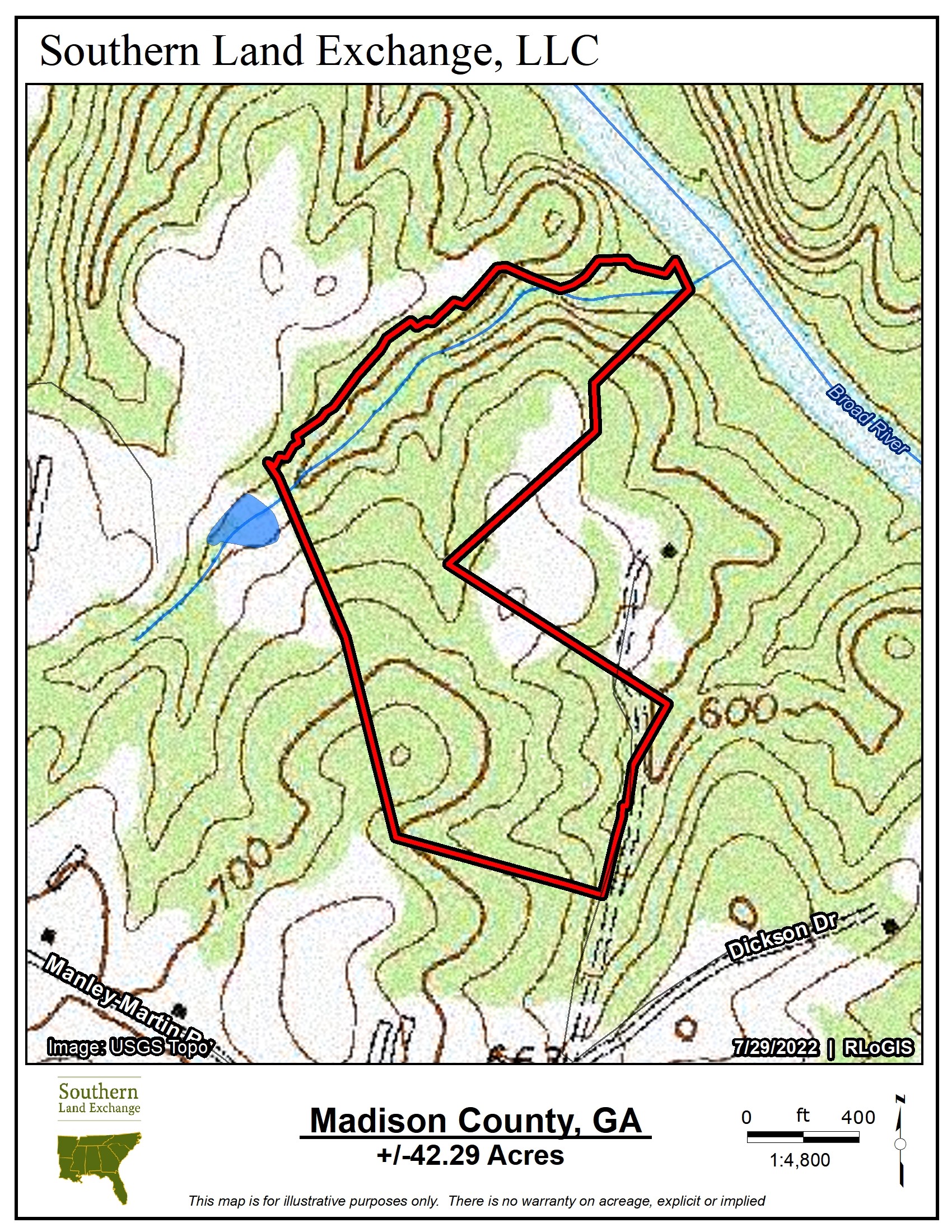 unencumbered and absolutely beautiful. A small creek flows from the Broad River along the Northern boundary