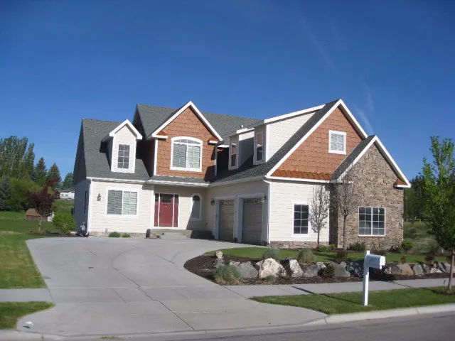 Custom craftsman style home located in Sky Meadows atop the Rexburg hill. With nearly 4000 square feet this home includes 5 finished bedrooms and 3.5 baths. The primary exterior of this home is finished with concrete hardy board and stone, consistent with the craftsmen style. Custom tiled entryway leads into the dining area featuring hardwood floors which is also the flooring into the kitchen area. The kitchen cabinets are a distressed white finish and solid granite counter tops. Enjoy the space in the main floor living room with high vaulted ceilings and a gas insert fireplace. The Main level master suite features a tray ceiling, the master bath features his/hers vanities, jetted tub and custom tiled shower. The upper level includes 2 bedrooms, 1 full bathroom and a bonus room that could be used as a bedroom or extra family space. The walkout basement features a family room with a gas fireplace insert and easy access to enjoy the backyard.