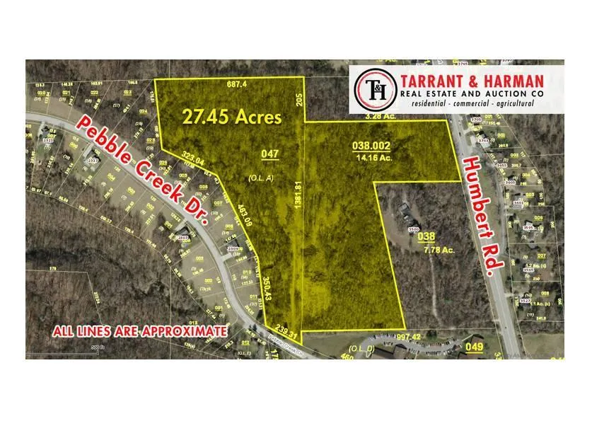 27.45 Acres +/- of mostly wooded ground situated between Pebble Creek Drive and Humbert Road. This property is suitable for development, custom home sites, and recreational enjoyment.