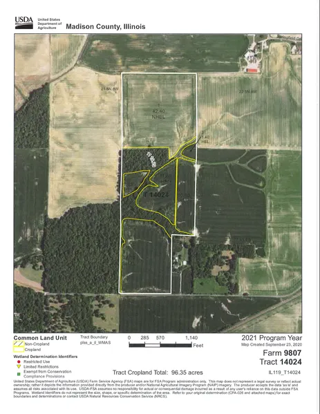 Gently rolling farm with 100 +/- tillable acres and 14 +/- wooded acres. Seller may divide. 3 miles northwest of Edwardsville. Ample road frontage and utilities along Smith Drive. This mixed use property offers awesome recreational possibilities and multiple building sites with walkout possibilities.