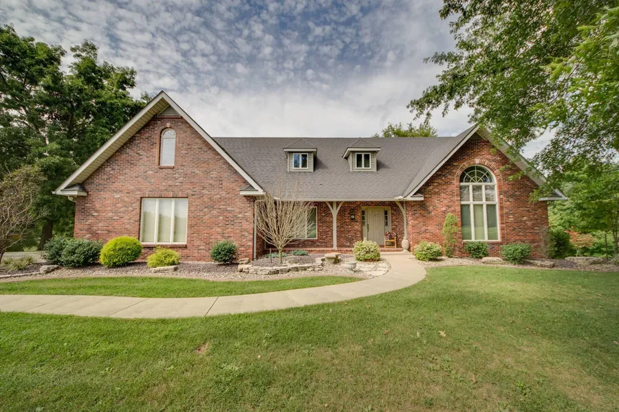 A rare and fantastic opportunity to purchase a country estate nestled in the fringes of the city limits. A well designed 1 1/2 story brick home is situated at the end of a private drive overlooking the pasture and agricultural fields. For a moment you forget you’re 2 minutes from amenities and interstate access. Inside the home you will find a living room with vaulted ceilings that is graced by a wood burning fireplace, a main floor master suite offering views of the acreage through the large windows, an office area with 16? ceilings and a beautiful transom window, formal dining room, and an eat-in kitchen that walks out to the covered brick patio. The 4? wide oak staircase leads upstairs to oversized bedrooms and a full bath. The acreage is well suited for cattle grazing, crop production, equestrian uses, and every day recreating. There are two buildings on the property including a catt...