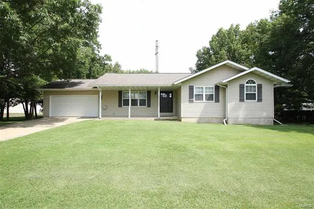 WOW! Approx 1 acre 3B/2B updated ranch one block from Village Park on a wooded corner lot w/pole barn in Triad school district!! Amazing location - walking distance to everything plus convenient interstate access to I-55/70/270. Covered front porch opens into LR w/skylight and wood burning FP. Separate DR w/pantry closet. Updated kitchen w/recessed lighting, tall cabinets overlooking two-tiered deck and beautiful wooded backyard. Master suite features an oversized bdrm, dual closets including a large walk-in closet w/organizers. M Bath features dual sinks, updated cabinetry and tile shower. Large open bsmt w/ceramic tile would make a great family room, game/recreation room and still have plenty of room for storage. 30 x 50 pole barn w/electricity. New HVAC 2020. New deck spindles 2021. Exterior electricity available to add an above ground pool. Other upgrades throughout. MUST SEE!