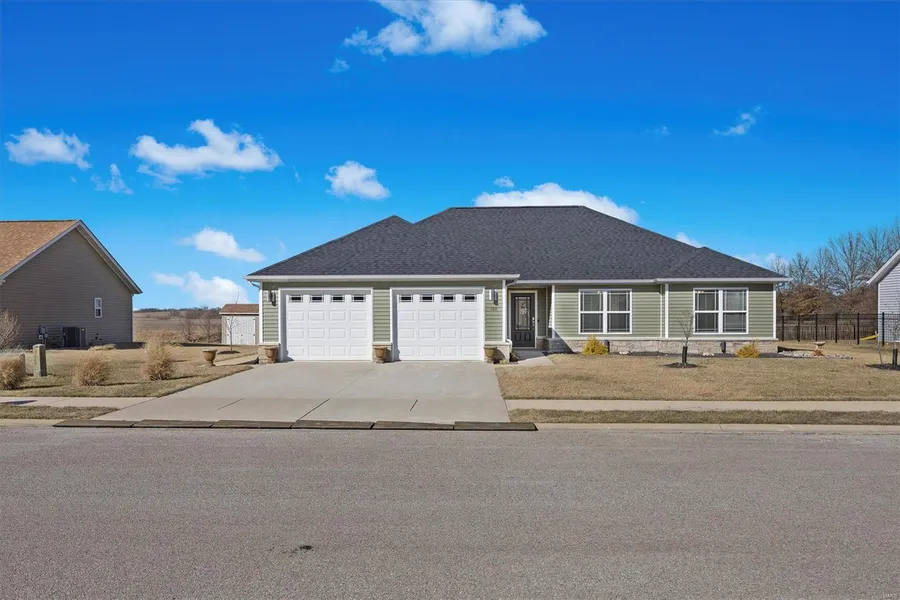 Beautiful single family home just two years old offers 3 bdrm, 2 full baths and no steps! Located in desirable Evergreen Court with large open floor plan and water view. Master bedroom has large walk-in closet and master bath - both w/sliding barn doors. Master bath has double sinks, large shower, linen closet. Great room features coffered ceilings and wood burning stove. Beautiful kitchen features white cabinets w/soft close doors & drawers, granite countertops, large walk-in pantry, breakfast bar, stainless steel appliances. Dining area is open to both the kitchen and great room with sliding doors to screened in patio and large uncovered patio both with relaxing water side view. Storage shed, kitchen appliances and washer/dryer all stay.