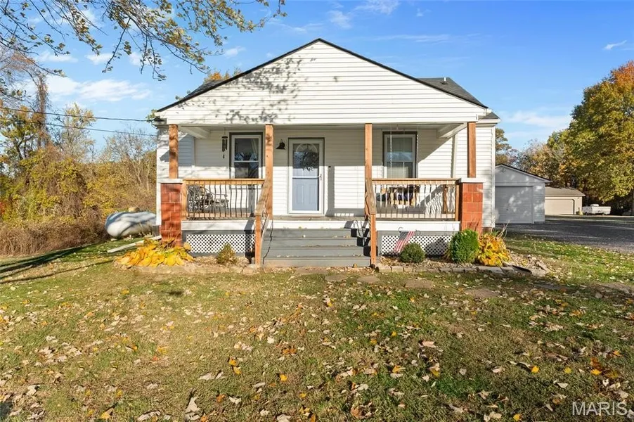 This Cute updated bungalow offers 3 bedrooms, 2 bedrooms on the main and 1 bedroom upper level with its own Furnace and A/C unit. Updated kitchen in 2023 w/breakfast bar, updated full bath in 2024 /main level laundry, 1 car detached garage, fenced back yard on 1 Acre. The covered front porch maintenance free decking, posts & vinyl siding is perfect for Springtime porch swinging! Staying with the home includes the refrigerator, dishwasher, stove, washer, dryer and whole house generator! Other updates on this home are Roof 2024. All kitchen appliances are 2023, Washer and Dryer 2024, Water heater 2025, added rock to driveway 2025. Propane tank is owned. A true move in ready home for you!