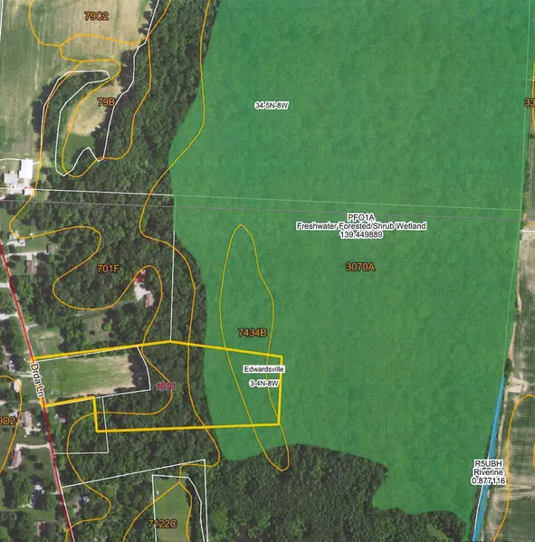 Mostly wooded 10 acre lot just minutes from downtown Edwardsville. This site offers multiple building sites with loads of development potential. Walkout lots possible. Utilities and High Speed Internet available at the road. Ample road frontage. This will be a new split. The taxes represent 2 parcels in which this new split will be from.