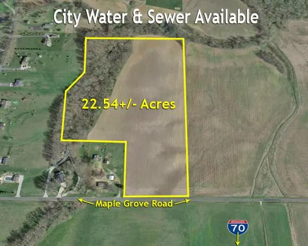 Vacant land auction of 22.54+/- acres offers a terrific opportunity for development! The property is located just north of Troy, Illinois approximately 1 miles from the I-55 & I-270 interchange. All public utilities are available at or near the property with city water available along Maple Grove Road. These 22.54+/- acres are located within Triad School District and Madison County zoning jurisdiction. Annexation into Troy or Glen Carbon is possible with the approval from the proper authorities.