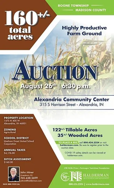 Legal Description 160+/- acres, more or less, located in the northwest 1/4 of Section 33, Township 22 North, Range 7 East, Boone Township, Madison County, Indiana